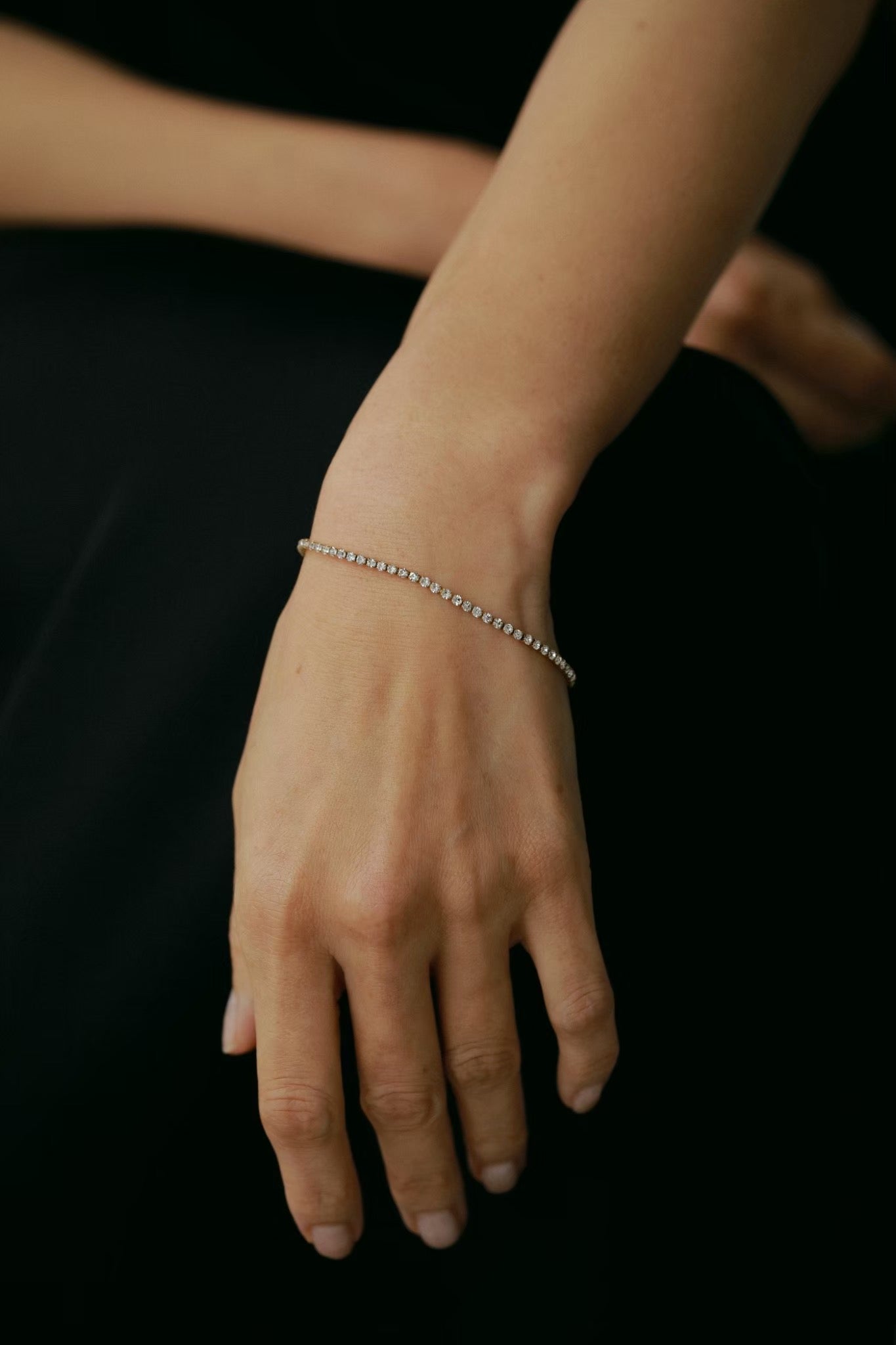 手元を動かすたび、ビジューが上品にきらめき、